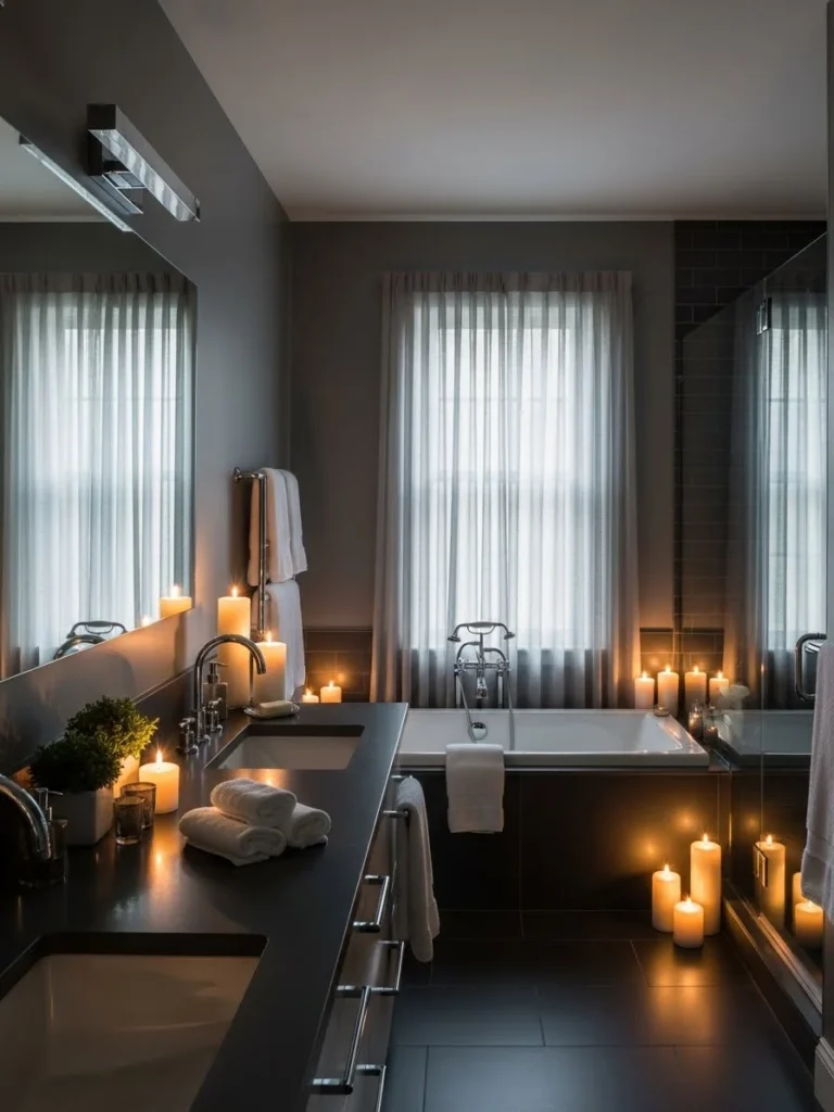 Step into the world of modern luxury with these 40 deep gray and chrome bathroom design ideas, where elegance meets contemporary sophistication. Deep gray tones create a rich, calming backdrop, while chrome accents add a polished, reflective touch that instantly elevates any space. From minimalist floating vanities to spa-inspired freestanding bathtubs, these designs showcase the perfect balance of functionality and high-end style. Each idea emphasizes clean lines, cohesive textures, and thoughtful lighting to transform ordinary bathrooms into serene retreats. Whether you’re renovating your master bathroom or planning a complete home makeover, these inspirational designs offer creative solutions for homeowners seeking modern elegance, timeless luxury, and refined comfort in every corner of their bathroom.