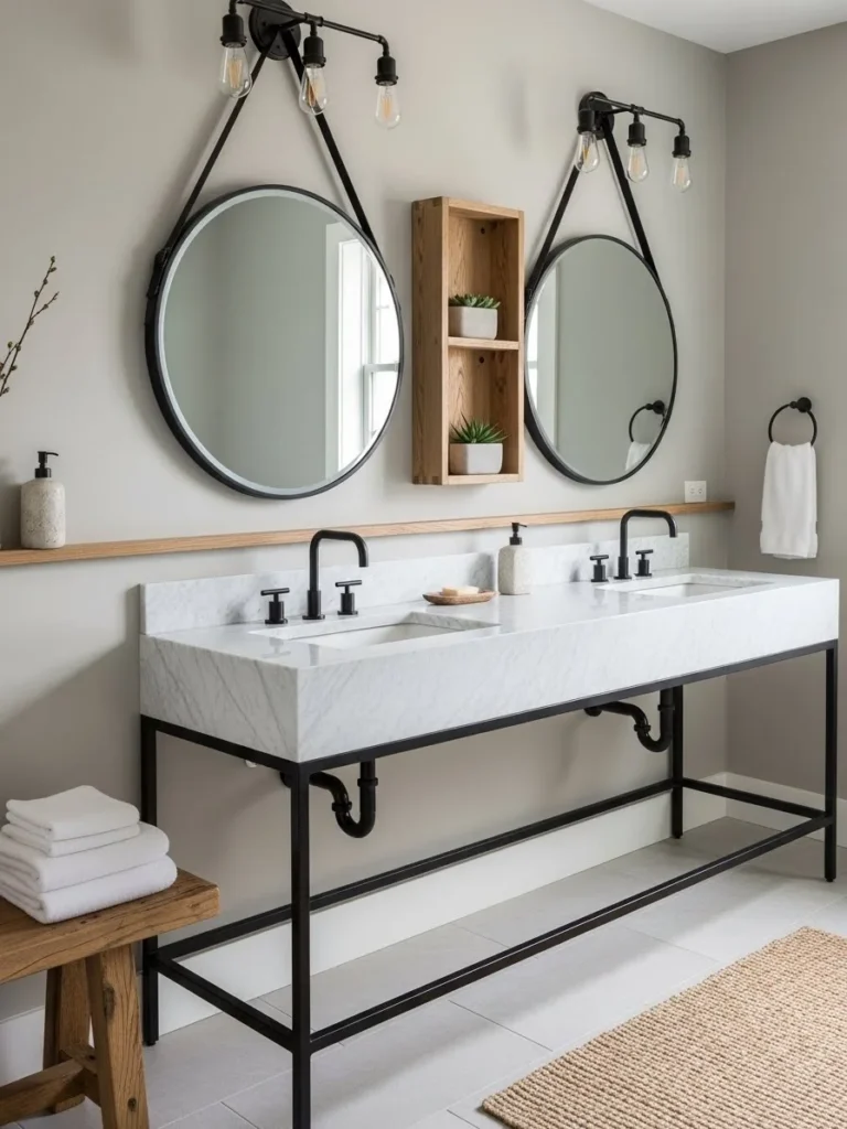 Modern Farmhouse Bathroom – Black Metal & Marble