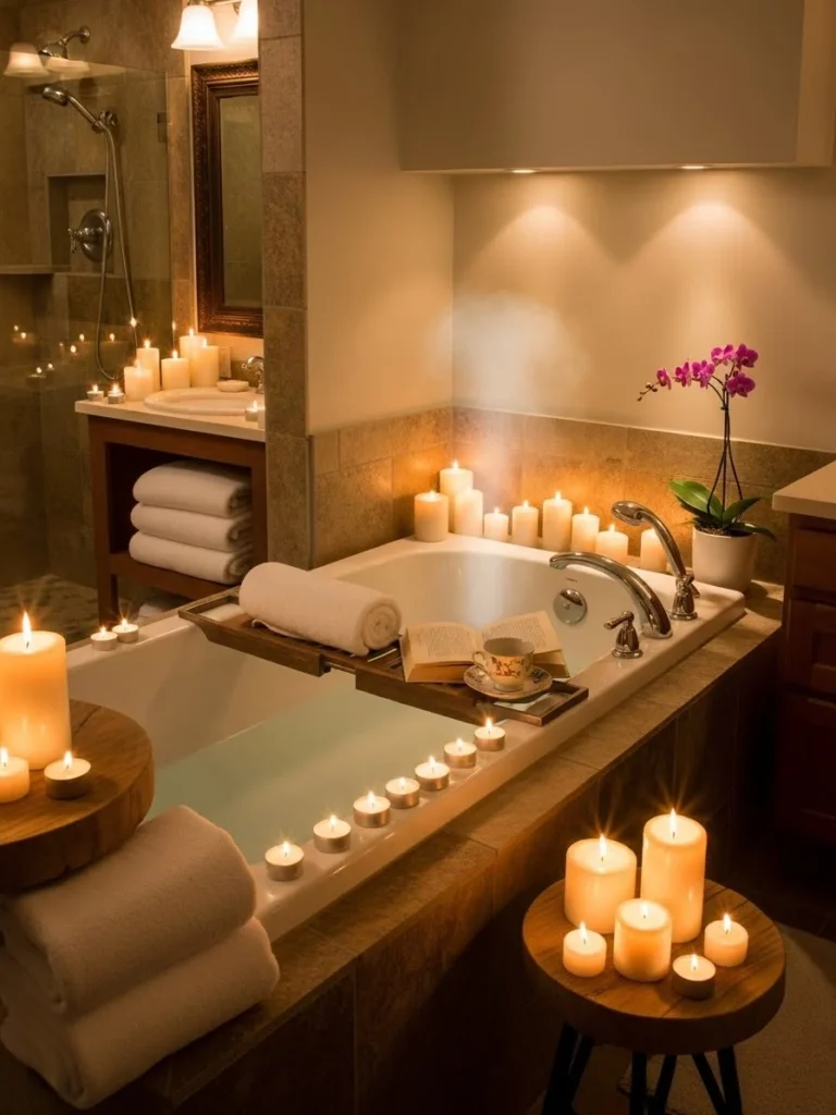 Luxury Wellness Bathroom with Aromatherapy Candles