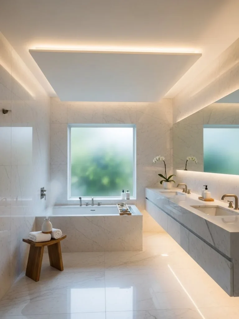 High-End Spa Bathroom with Seamless Marble Surfaces
