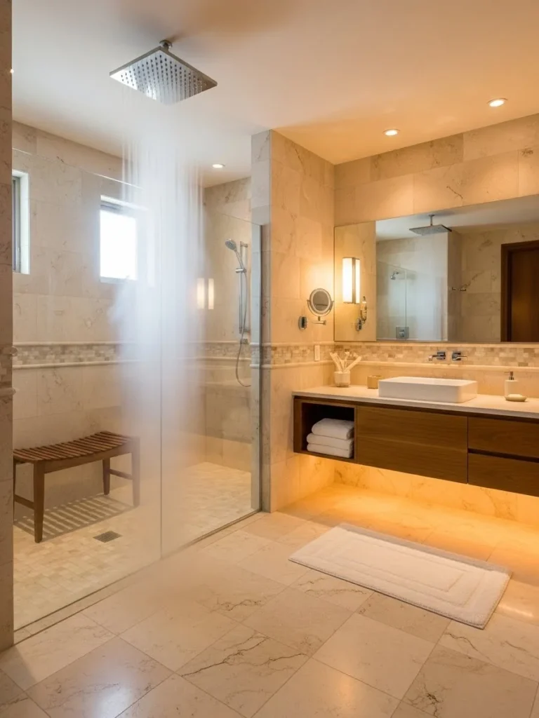 Luxury Bathroom with Rainfall Shower and Natural Stone