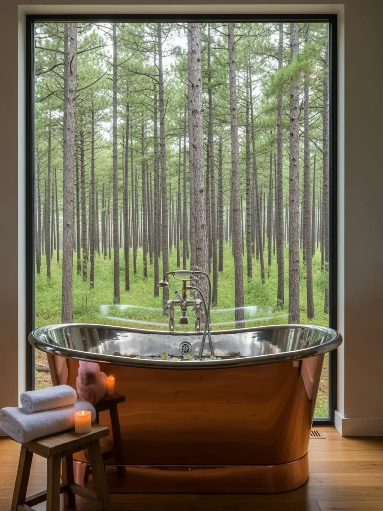 Bathing In Nature Standalone Copper Tub Next To Floor Window