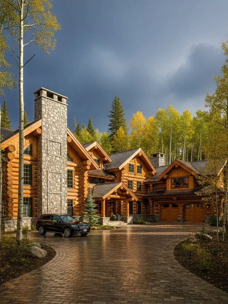 Outside, the property is equally impressive, with a heated cobblestone driveway that remains clear of ice even in the heaviest blizzards. A fleet of luxury SUVs sits parked beneath a massive timber porte-cochère, ready for a day on the slopes. The wrap-around balconies provide a front-row seat to the jagged peaks, where the sheer size of the logs creates a sense of safety and permanence that no other building material can match. This is the ultimate mountain sanctuary for the traditionalist.