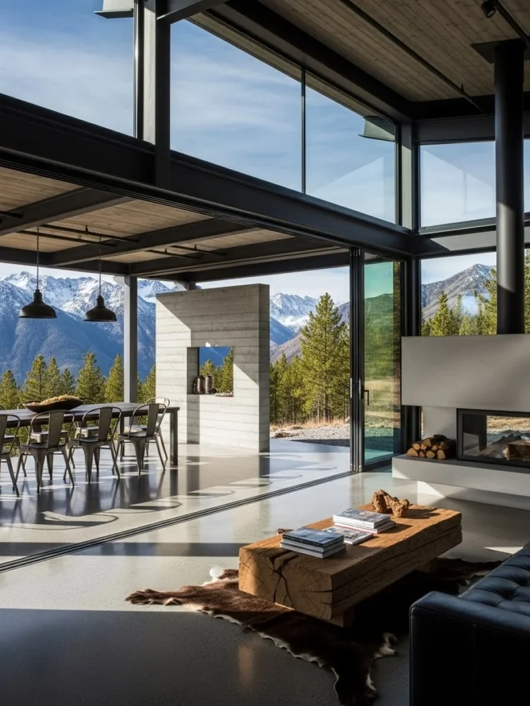 Industrial Alpine Chalet Featuring Exposed Steel And Concrete