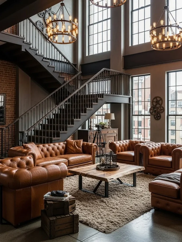 Lighting is provided by heavy industrial pendants and articulating brass wall lamps that allow the user to direct light exactly where it is needed. This focus on “utility-luxe” ensures that the home is as functional as it is beautiful. The color palette is restricted to “masculine” tones: tobacco, slate, iron, and deep mahogany. It is a sophisticated environment that values the clink of a glass against a stone coaster and the sound of heavy boots on a wooden floor.