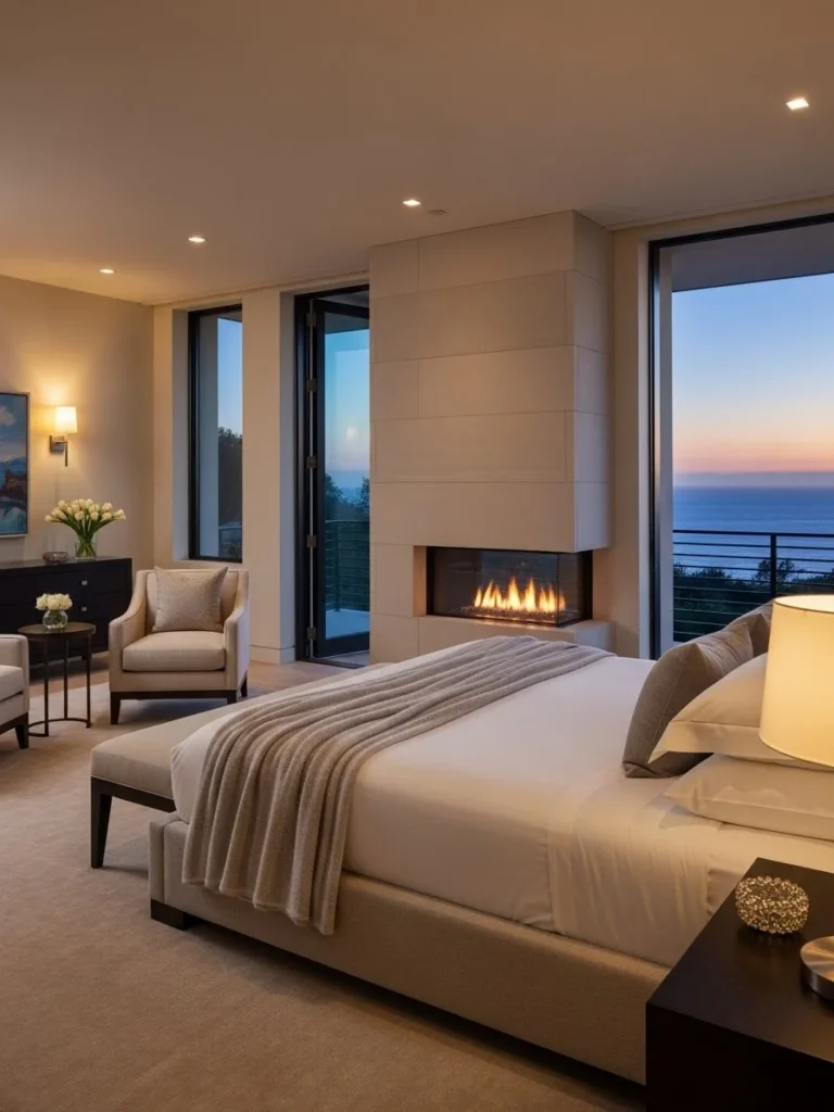 The interior design is specifically curated to complement the sunset palette. Velvet sofas in shades of burnt orange and deep terracotta are arranged to face the west, allowing residents to witness the dramatic change in sky color from the comfort of a heated lounge. Low-profile coffee tables made of petrified wood sit on silk-blend carpets that shimmer under the fading light. As the sun disappears, the home’s smart lighting system slowly fades in, transitioning from a natural glow to a warm, candlelit intimacy.