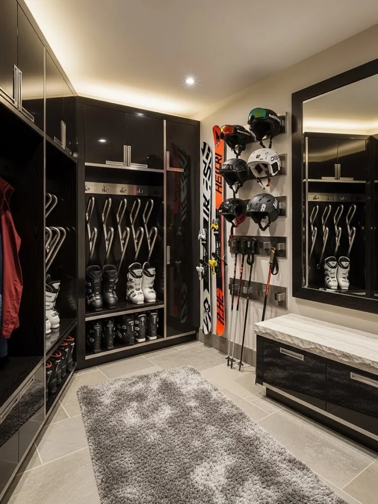 This space is the ultimate convenience for the dedicated skier, removing the friction and clutter typically associated with winter sports. By treating the preparation for the mountain as a luxurious ritual, the mudroom sets the tone for the entire day. It is an organized, warm, and beautiful environment that proves that in a true luxury home, every square inch should be both functional and aesthetically pleasing.