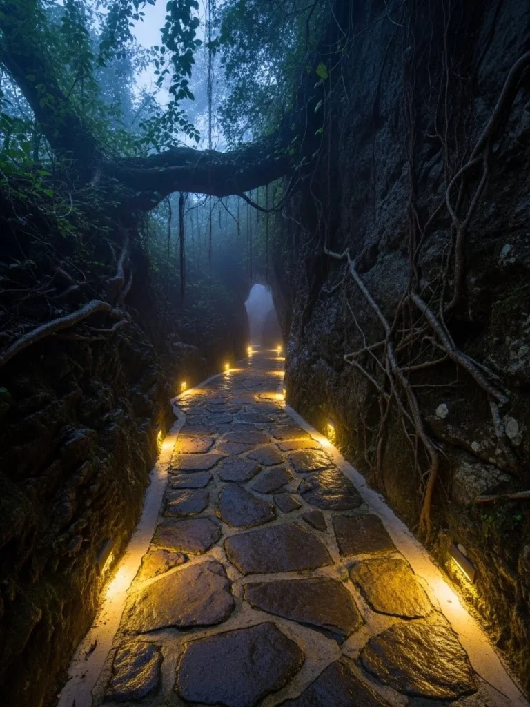 The Hidden Path Lit By Recessed Stone Floor LEDs