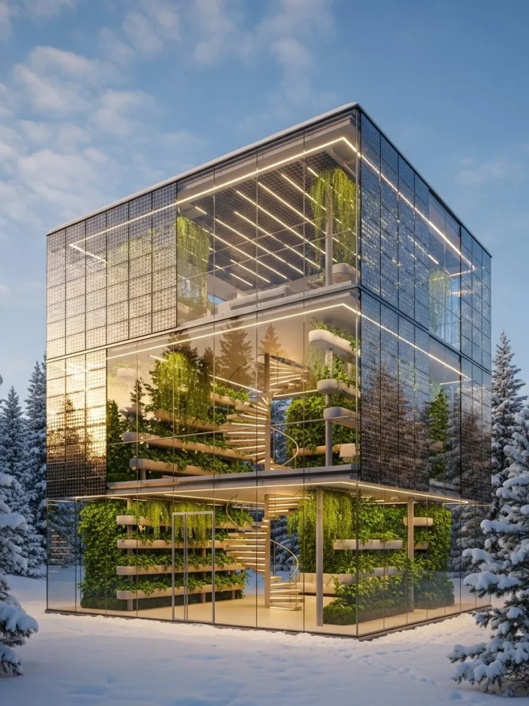 This solar chalet represents the next generation of mountain living, where “luxury” is synonymous with “harmony.” It proves that the most sophisticated lifestyle is one that protects the natural world for future generations. Standing in the indoor forest while watching a blizzard rage outside through the solar glass is a powerful experience, representing a future where humanity and nature coexist in a state of perfect, high-tech, and beautiful balance.