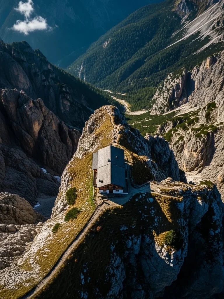 The shot serves as a reminder of the human desire to conquer the heights and find beauty in the most challenging environments. While the interior provides total safety and warmth, this exterior perspective celebrates the thrill of the edge and the audacity of the architecture. It is the ultimate “power shot” for a luxury home, proving that with enough vision and skill, even the most inaccessible peaks can be transformed into a place of refined and elegant habitation.