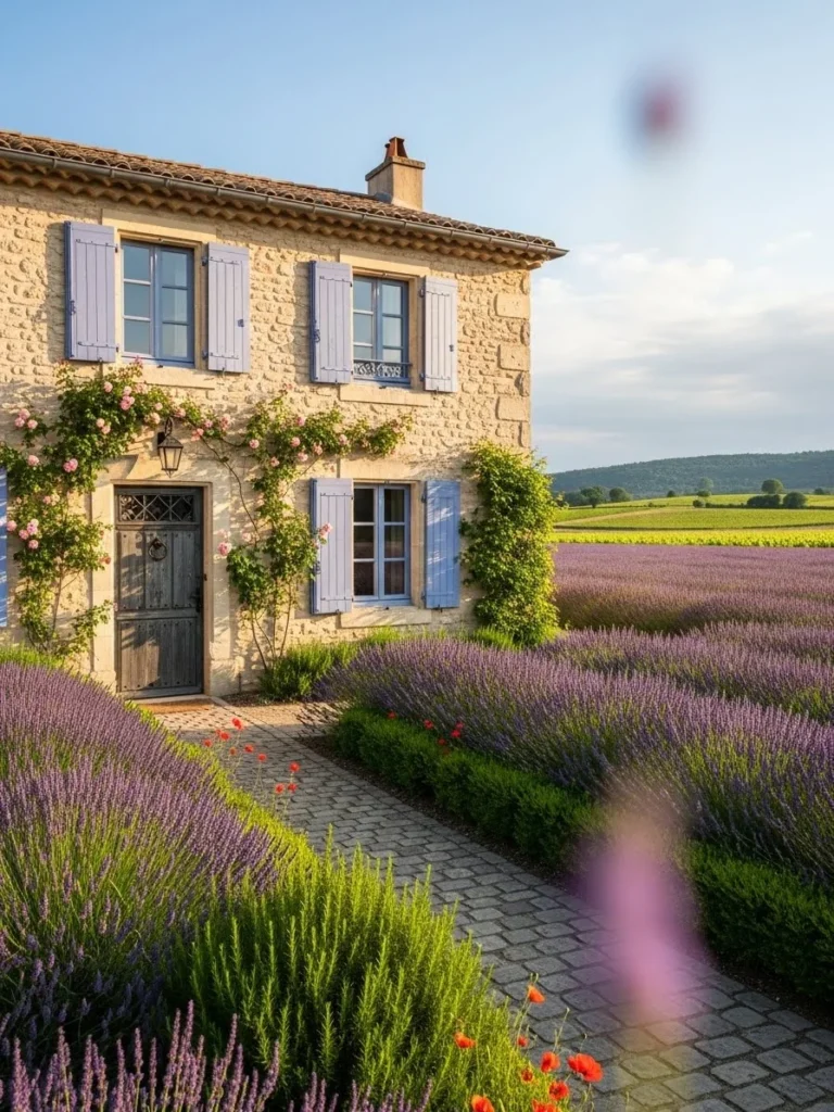 French Provincial Luxury Cottage Surrounded By Lavender Fields