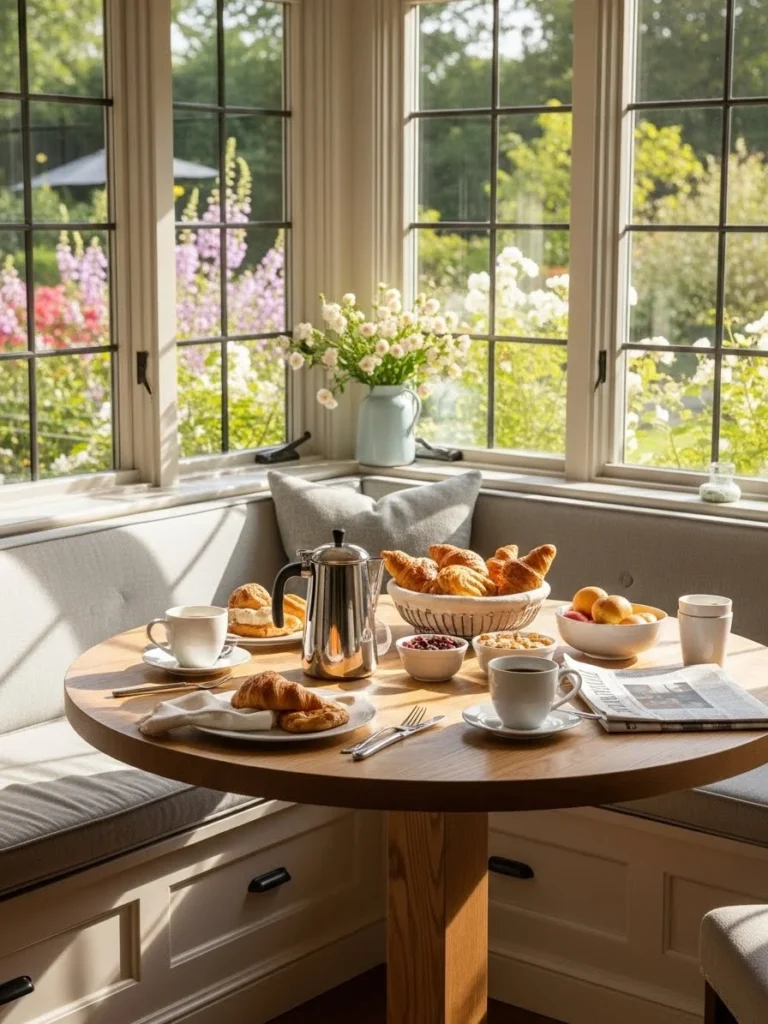 Bright Sun Drenched Breakfast Nook With Built In Seating