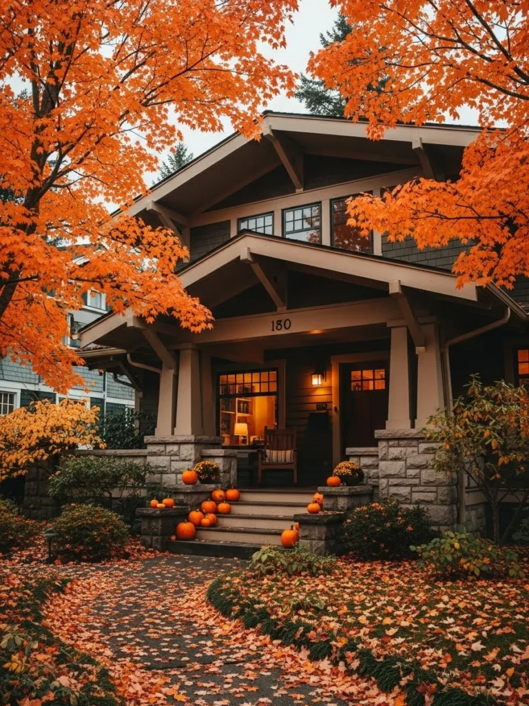 This image illustrates the emotional connection people have with Craftsman homes and the seasons. The natural materials of the architecture pair perfectly with autumn decor. It appeals to the homeowner who loves to decorate for holidays and embraces the changing seasons as part of their home’s aesthetic identity.