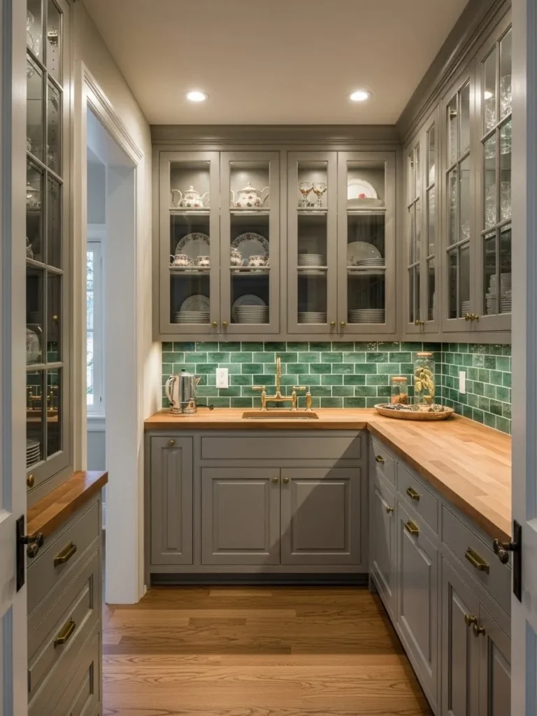 This image represents the height of entertaining luxury. A butler’s pantry is a coveted feature for homeowners who host frequently, providing a dedicated space for staging meals, mixing drinks, and storing serving ware out of sight of the main kitchen. It speaks to a sophisticated lifestyle and a home designed with intricate functional details.