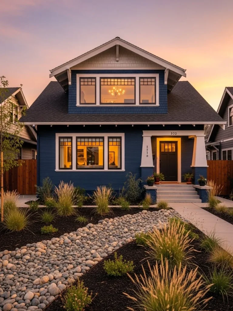 Renovated Craftsman Bungalow With Navy Paint And White Trim