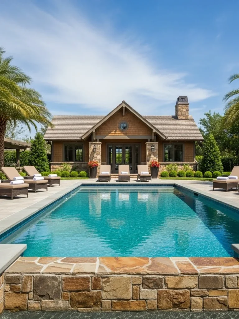 This image represents the ultimate staycation luxury. A well-designed pool and accompanying pool house turn a backyard into a private resort. It appeals to homeowners with the space and budget to create a comprehensive recreational environment at home, designed for maximum summer enjoyment.