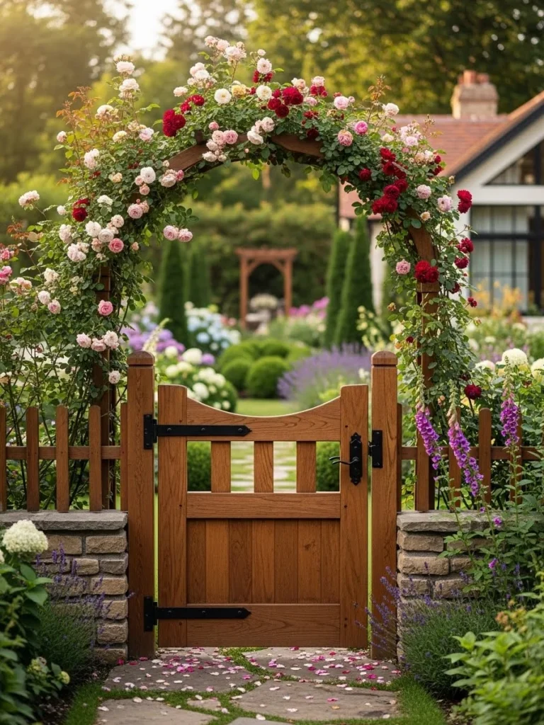 This image illustrates the luxury of privacy and beautiful landscaping. It shows how hardscaping elements like gates and walls can be used to create distinct “outdoor rooms” and a sense of discovery within a property. It appeals to the avid gardener and the homeowner who values seclusion and natural beauty.