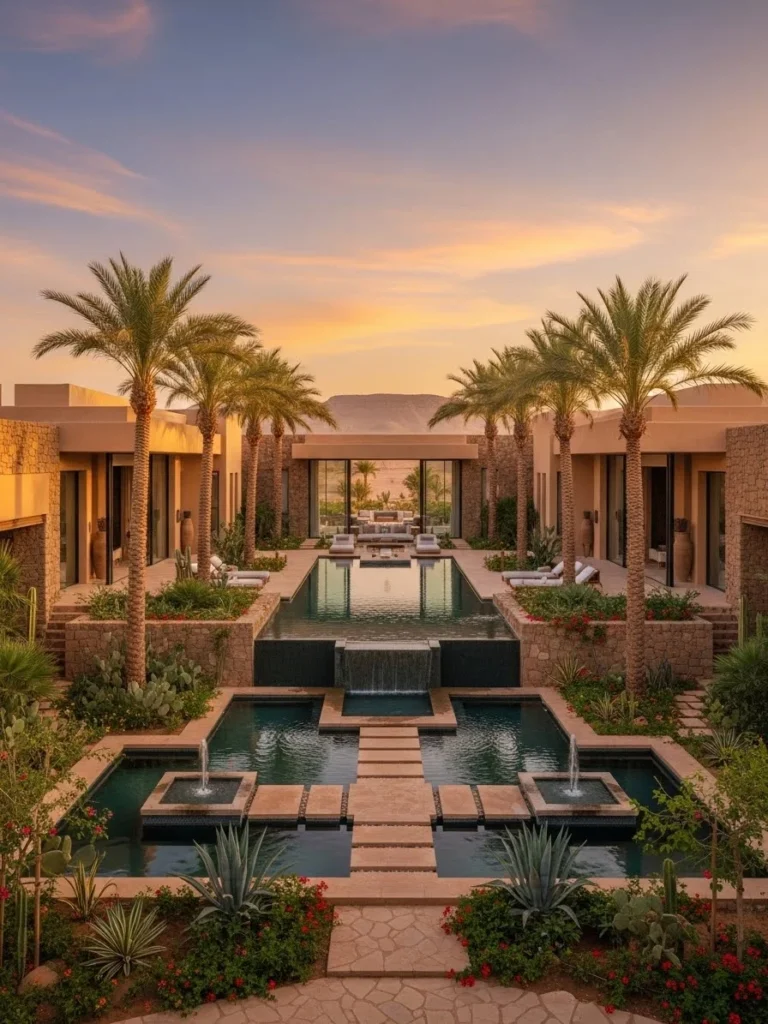 Desert Luxury Villa With Oasis Garden And Warm Light