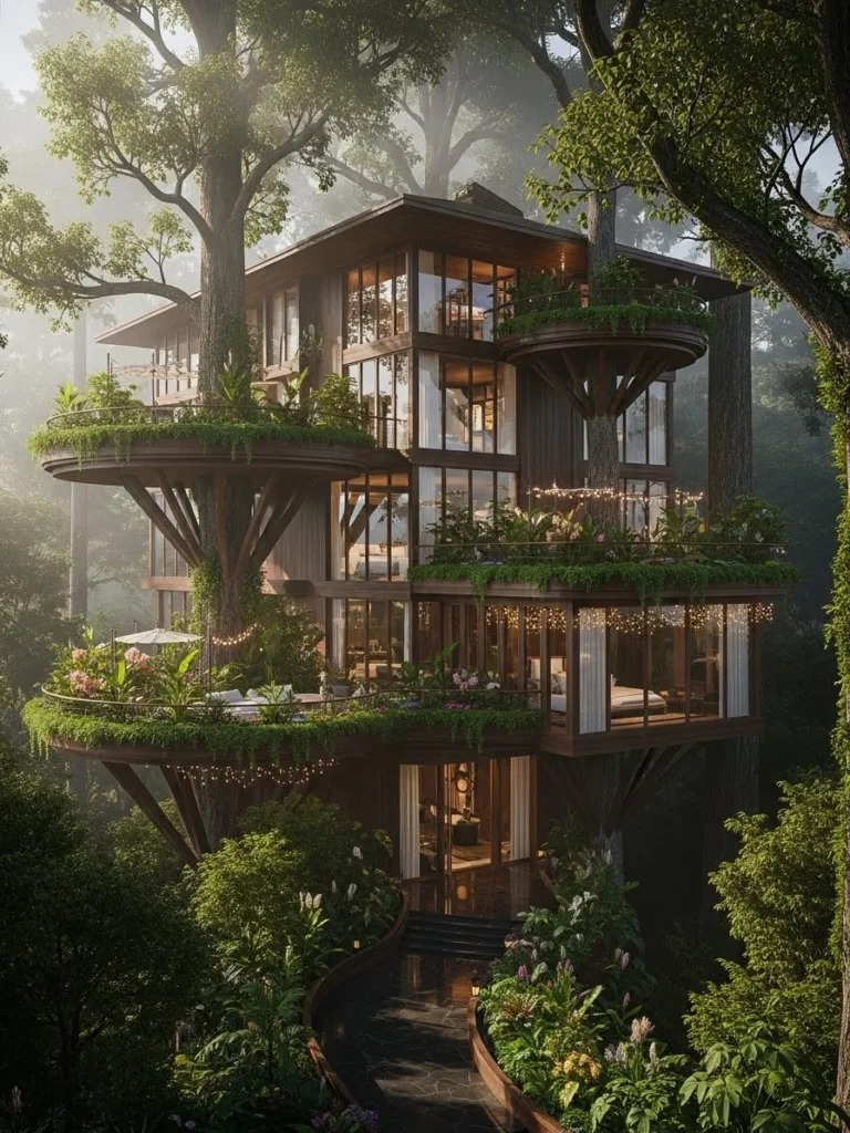 Luxury Treehouse Mansion With Elevated Gardens In Misty Forest