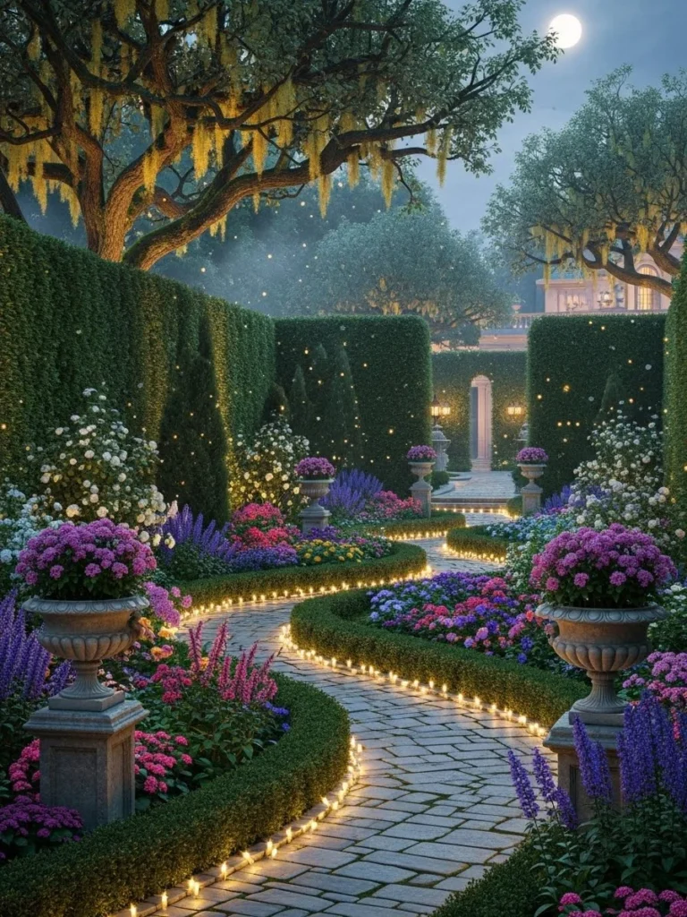 As evening approaches, subtle lights illuminate pathways and foliage. The estate becomes enchanted—a sanctuary designed to protect beauty, privacy, and quiet wonder behind its living walls.