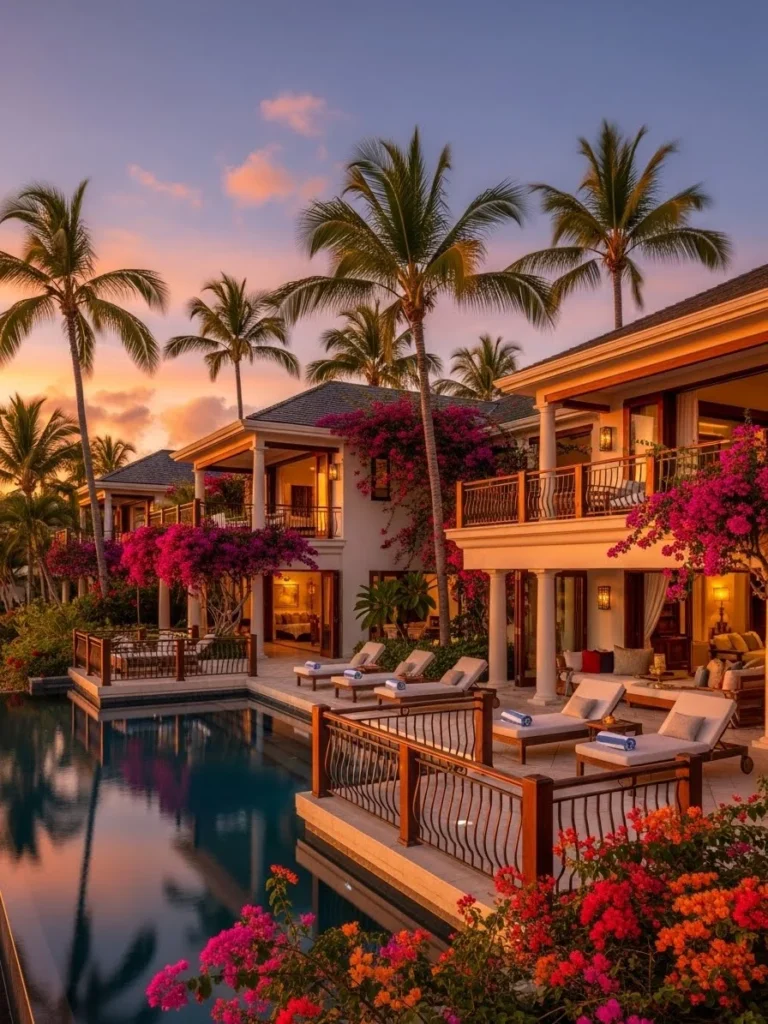 When the sun finally dips below the horizon, the estate becomes a tranquil sanctuary. Lanterns and subtle lighting illuminate the garden, enhancing its dreamy atmosphere. This tropical retreat embodies luxury as ease, beauty, and harmony with the natural world.