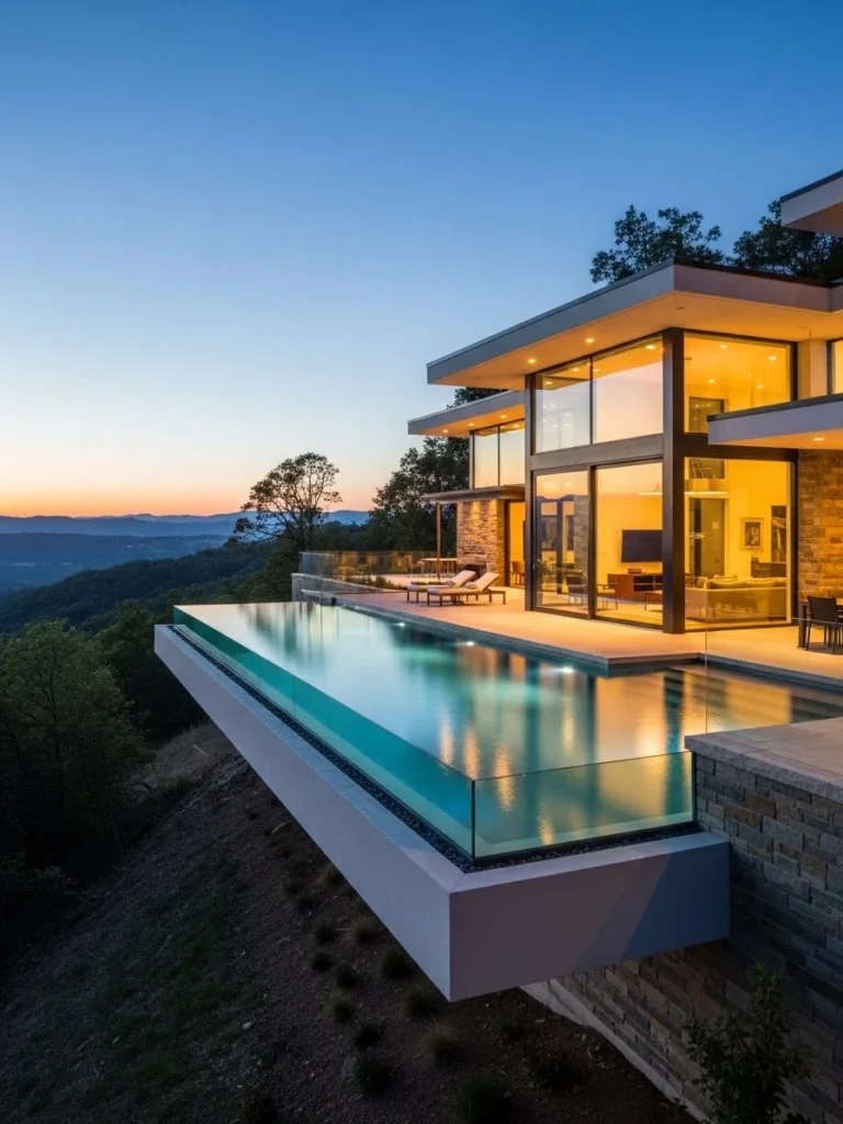 Cantilevered Hillside Mansion With Glass Edge Infinity Pool