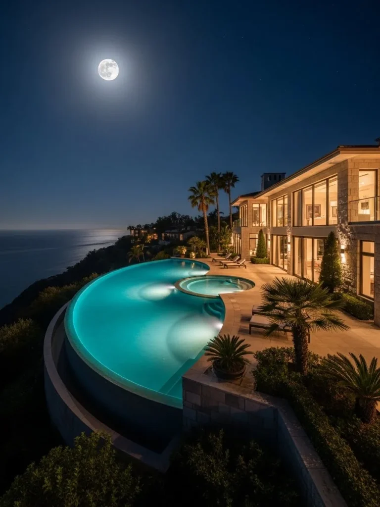 Cliffside Mansion With Moonlit Ocean Infinity Pool