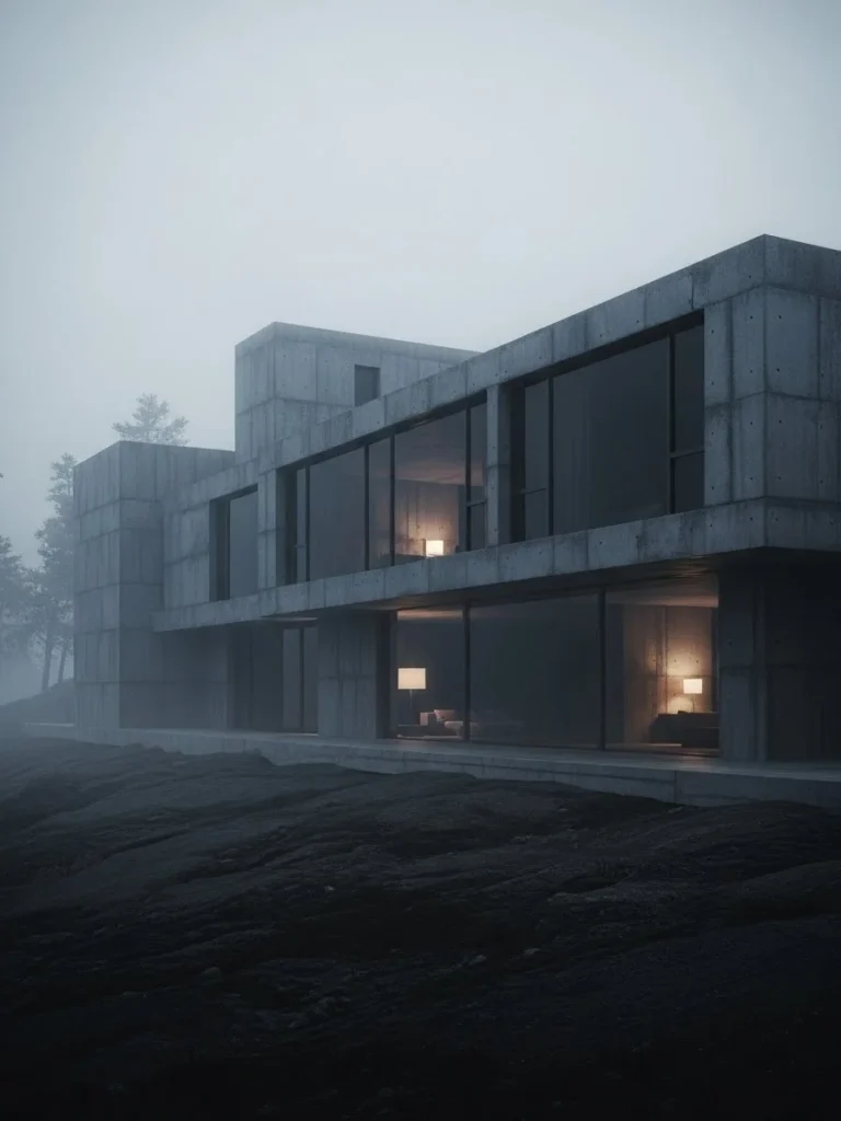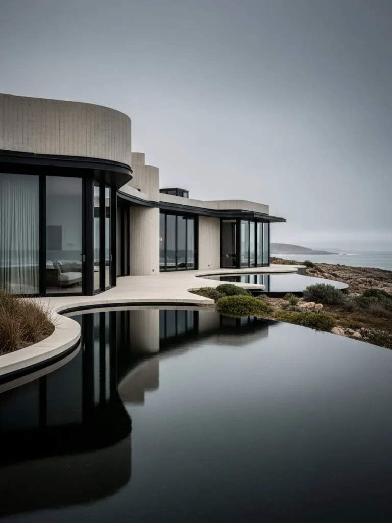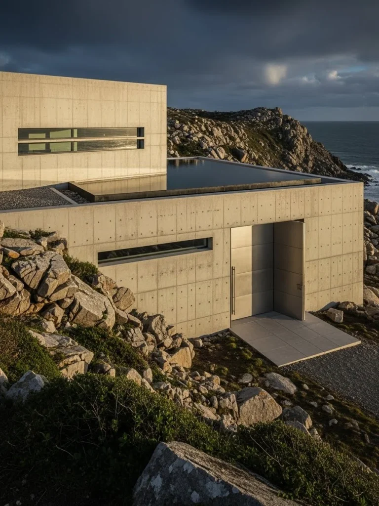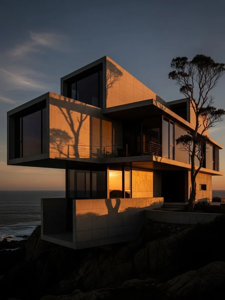 Sculptural Concrete Ocean Residence With Moody Cinematic Atmosphere