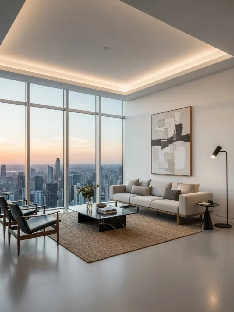 Futuristic Smart Home With Dynamic Lighting Panels And Sleek Geometry