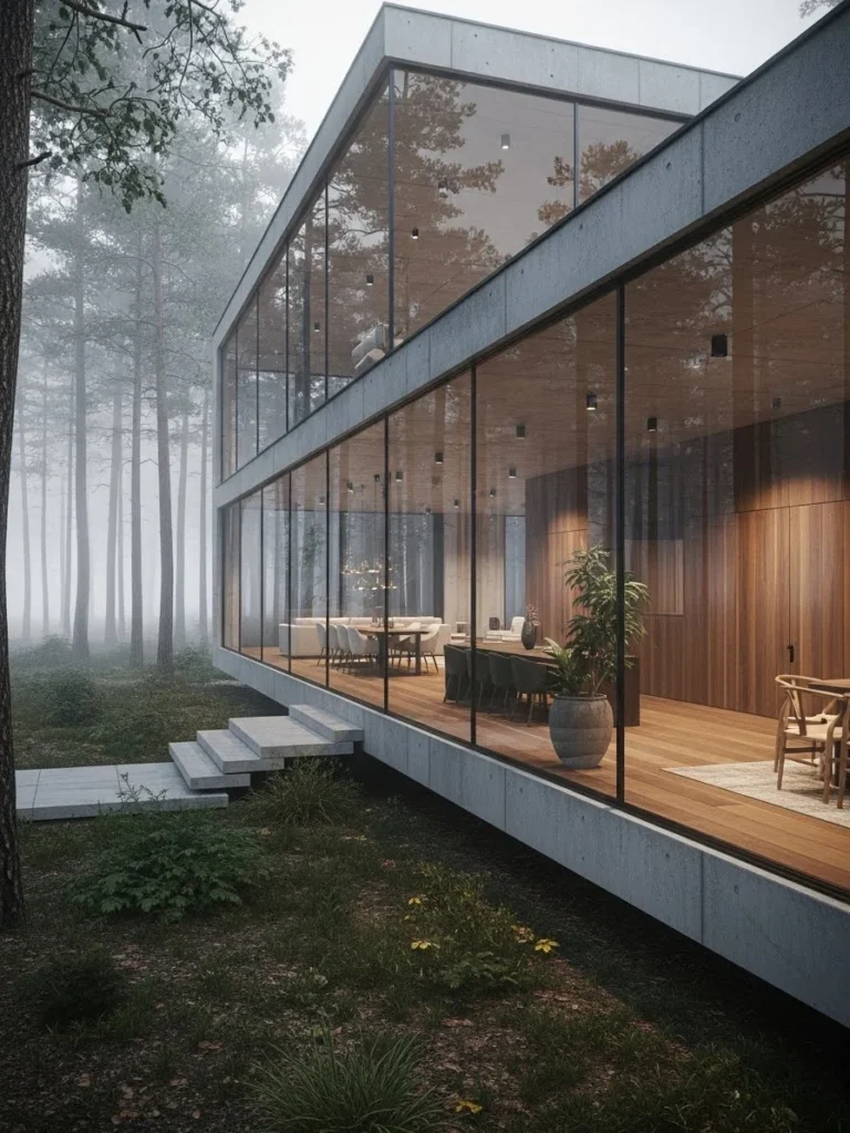 Modern Forest Mansion With Glass Walls And Concrete Planes