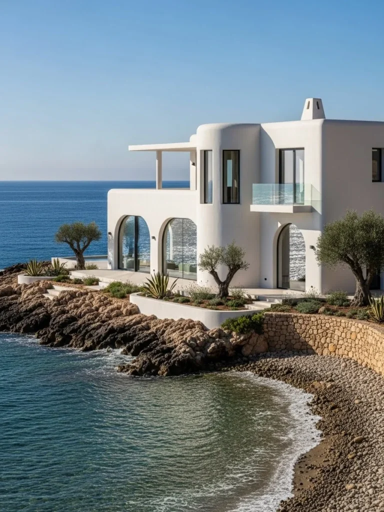 Modern Mediterranean Seaside Mansion With Minimalist White Geometry