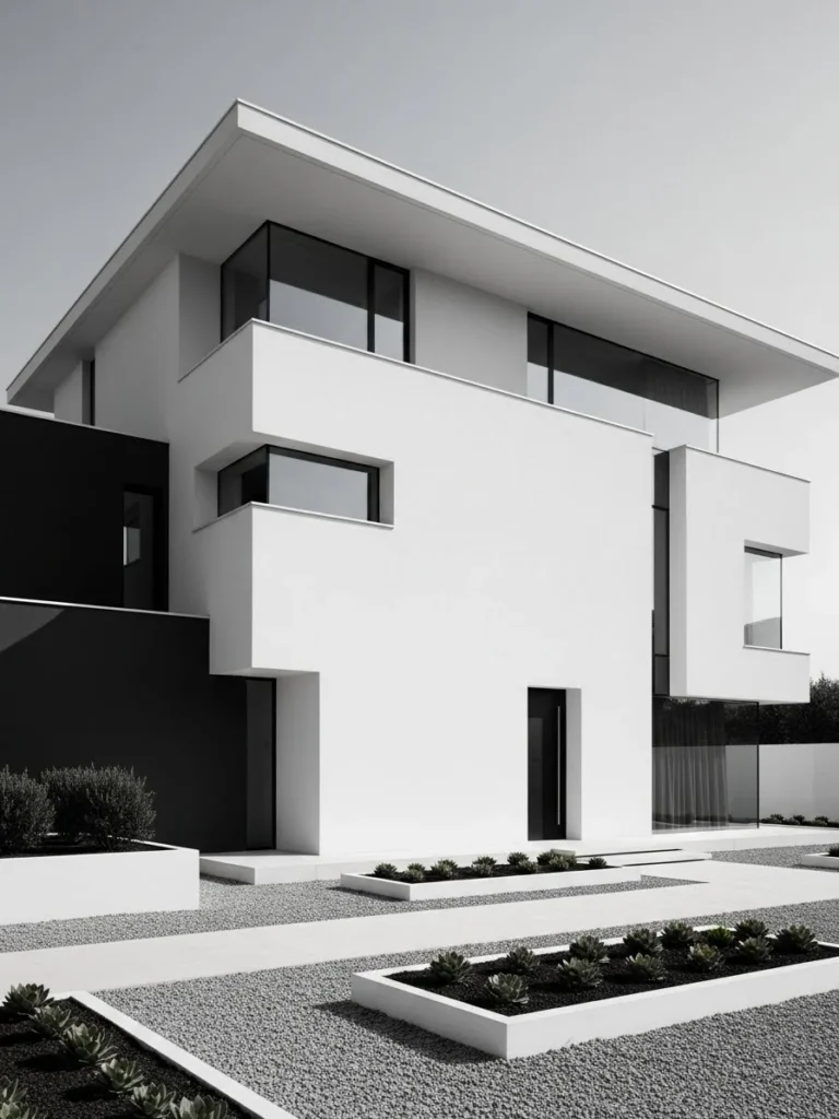 Luxury Cube Shaped Modern House With Monochrome Elegance