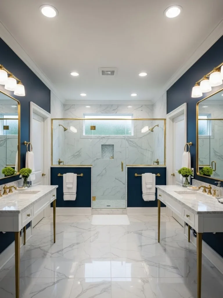 35 Navy & Gold Luxury Bathroom Designs for 2026