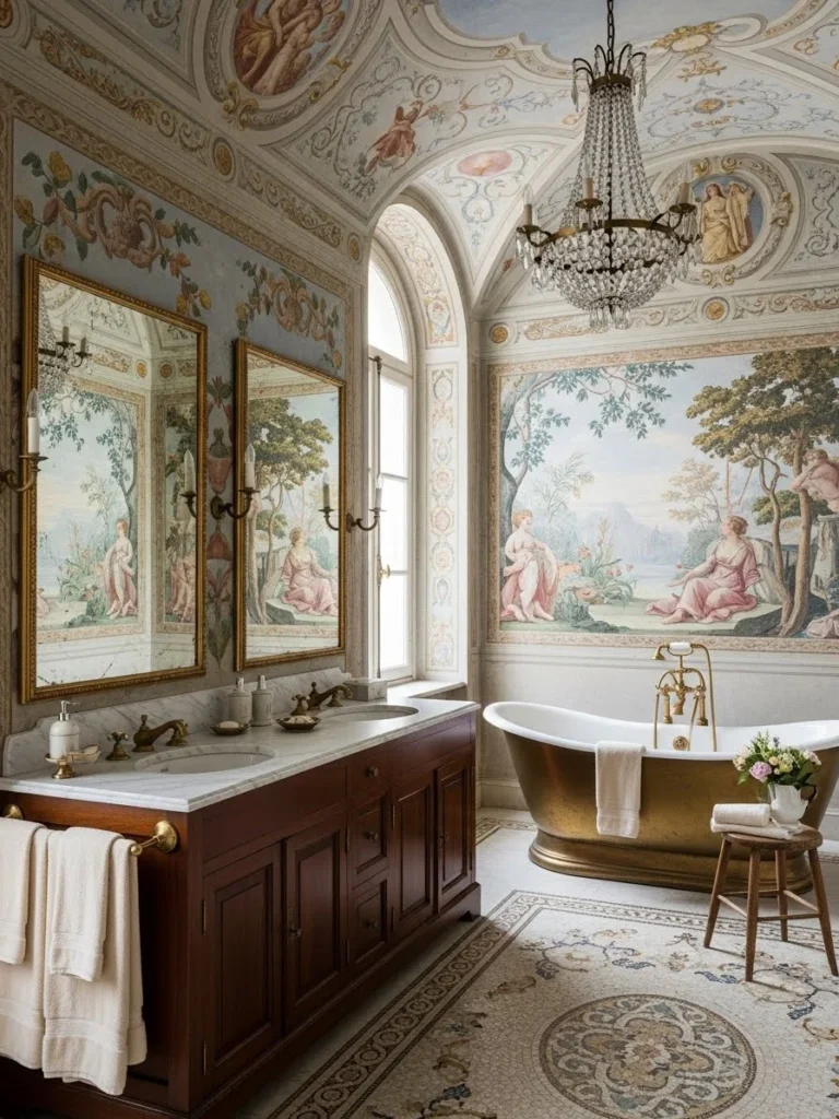 Classic Palazzo Bathroom Design With Fresco Murals