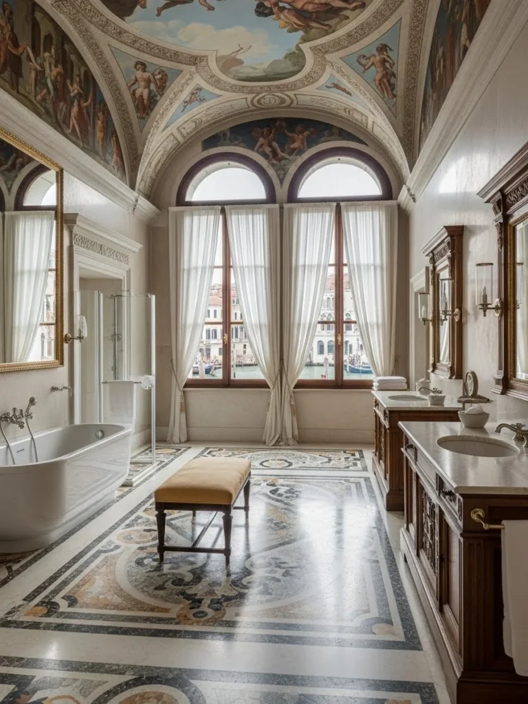 The atmosphere is refined rather than grandiose, emphasizing craftsmanship and material longevity. This bathroom reflects Venetian palazzo values—elegance through restraint, technical mastery, and adaptation to place—while remaining historically and architecturally grounded.