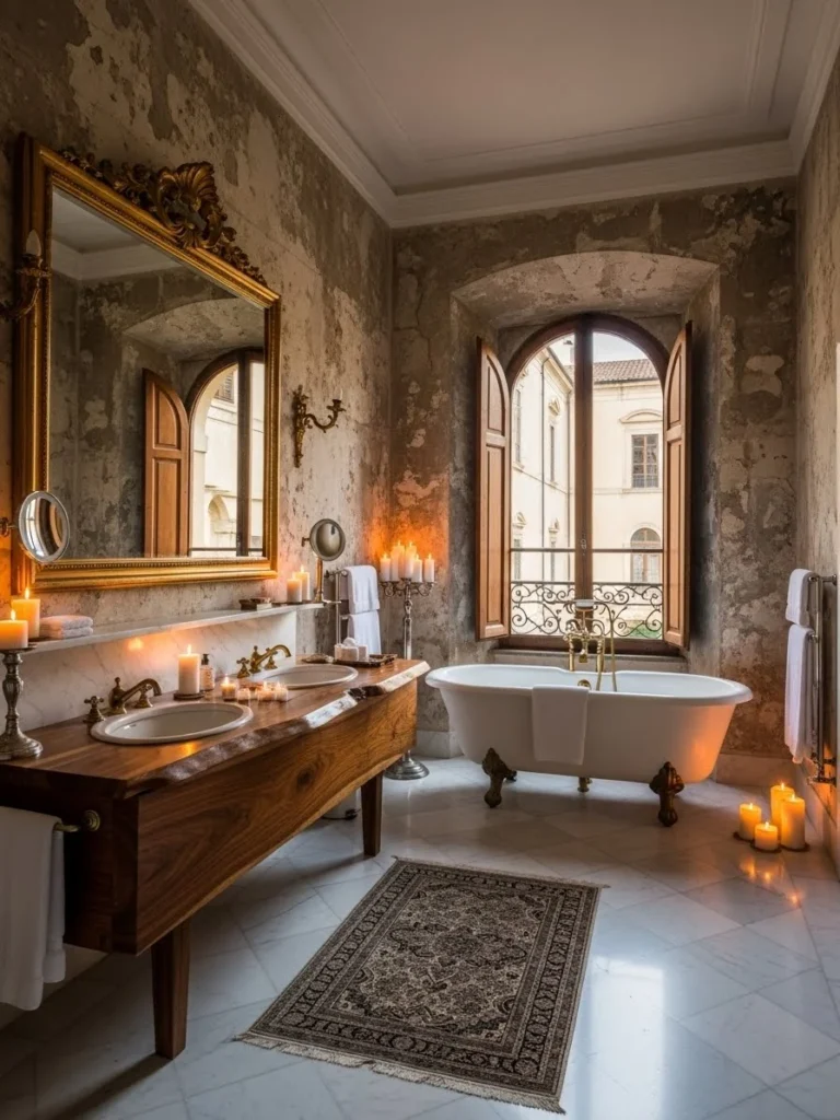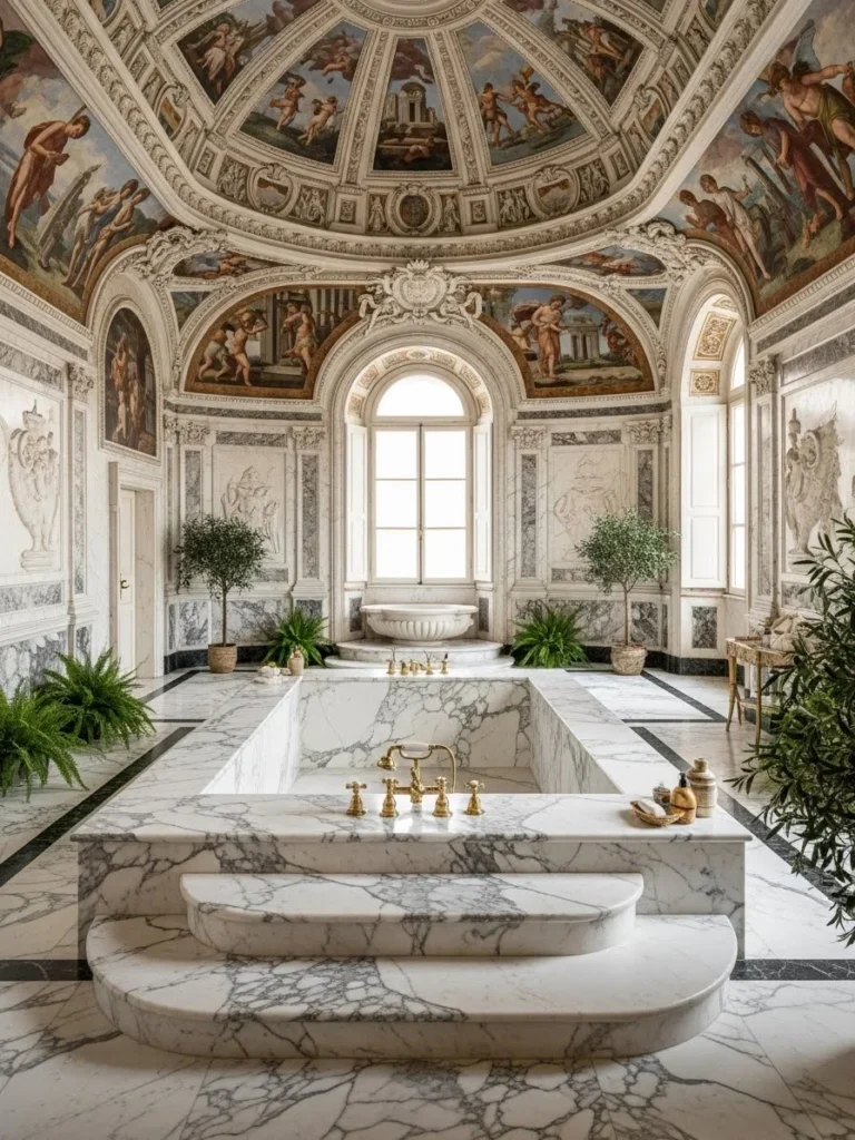 Experience the elegance of Italy’s grand palaces with 30 meticulously crafted Palazzo-style bathrooms. Each design blends historical authenticity with modern luxury, featuring marble floors, frescoed ceilings, sculptural stone tubs, and classical architectural detailing. From Renaissance symmetry to Baroque drama, these spaces celebrate proportion, light, and craftsmanship, transforming private bathrooms into serene, opulent retreats.