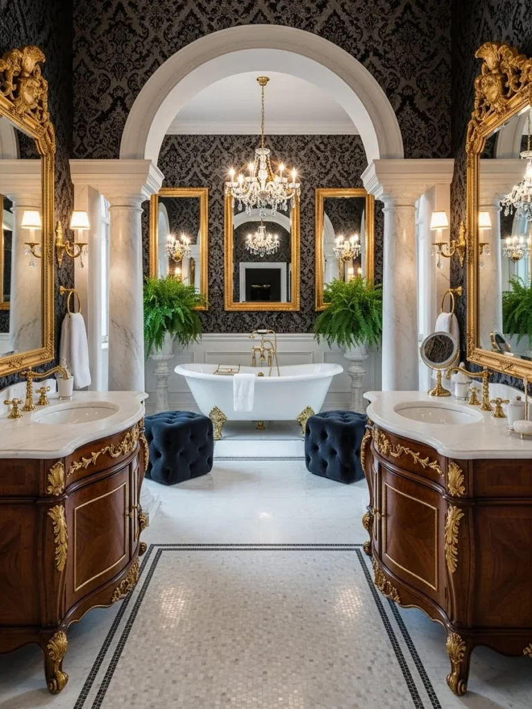 Opulent Palazzo Bathroom With Dramatic Symmetry